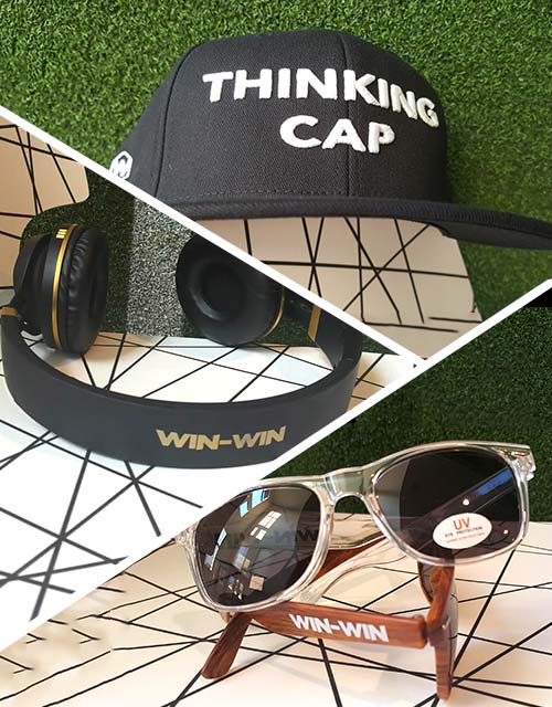 Be a real winner with this premium schwagg pack! "Thinking Cap", Custom Win-Win headphones, and Win-Win "Loser Blockers", aka sunglasses